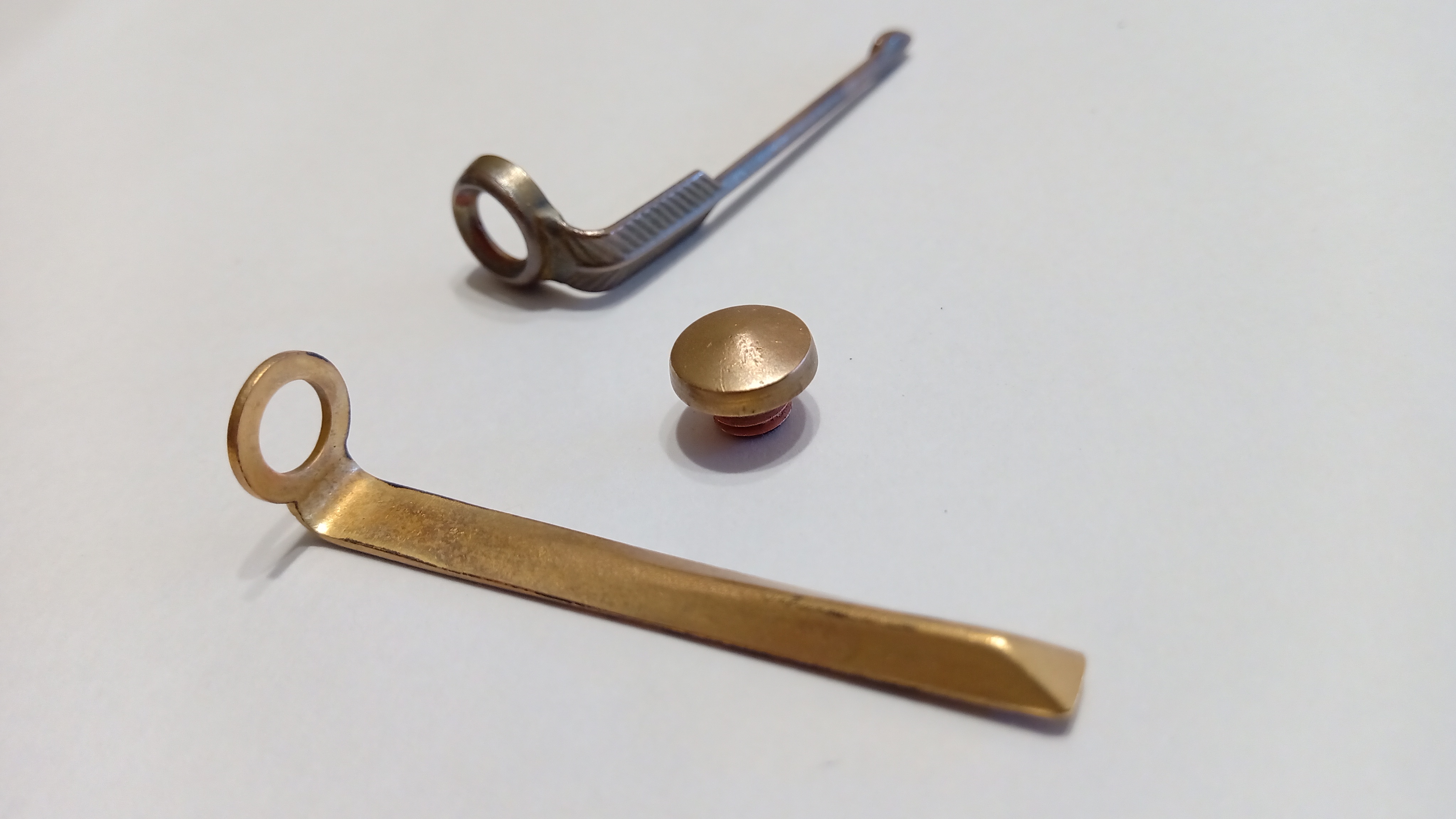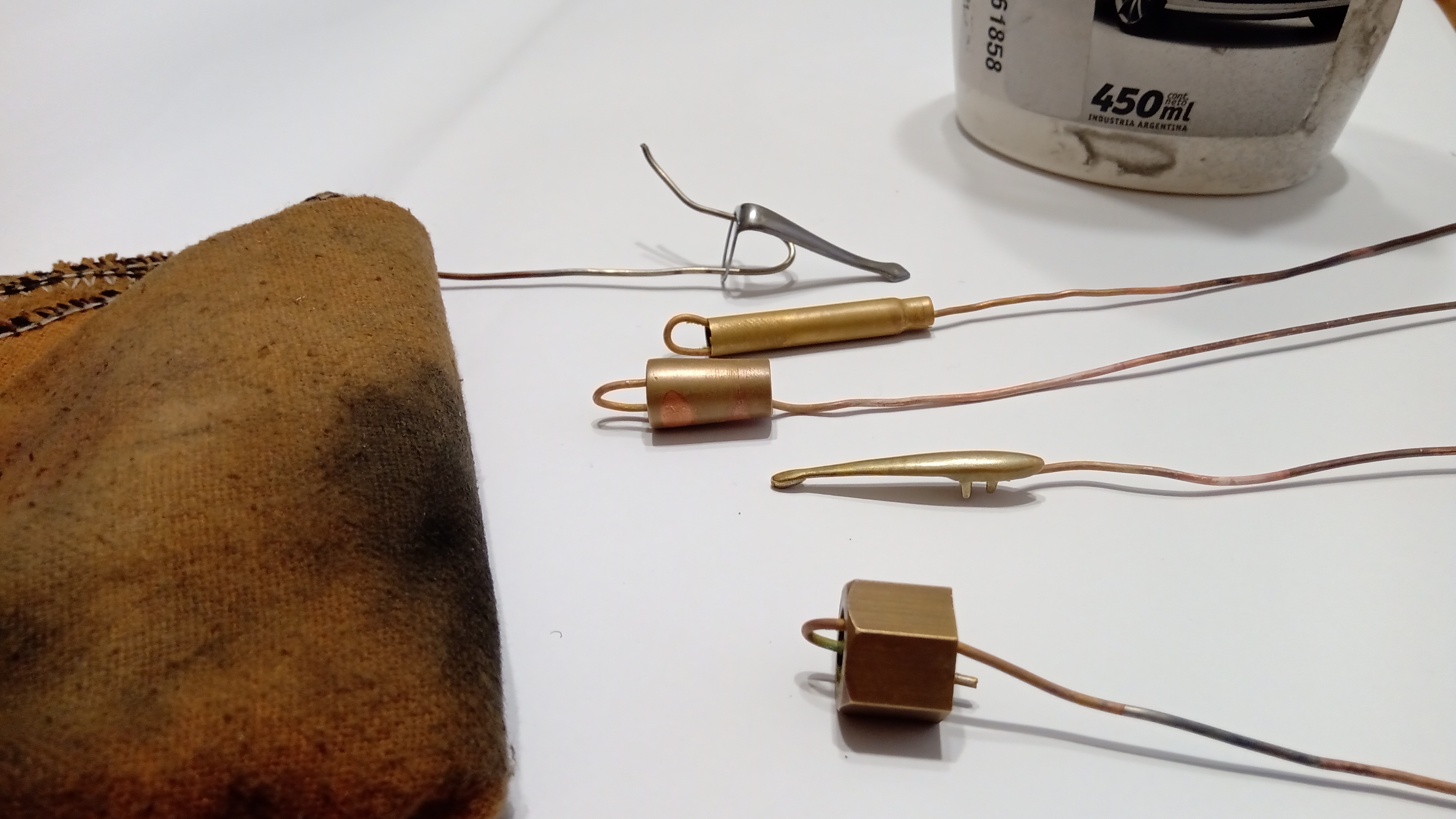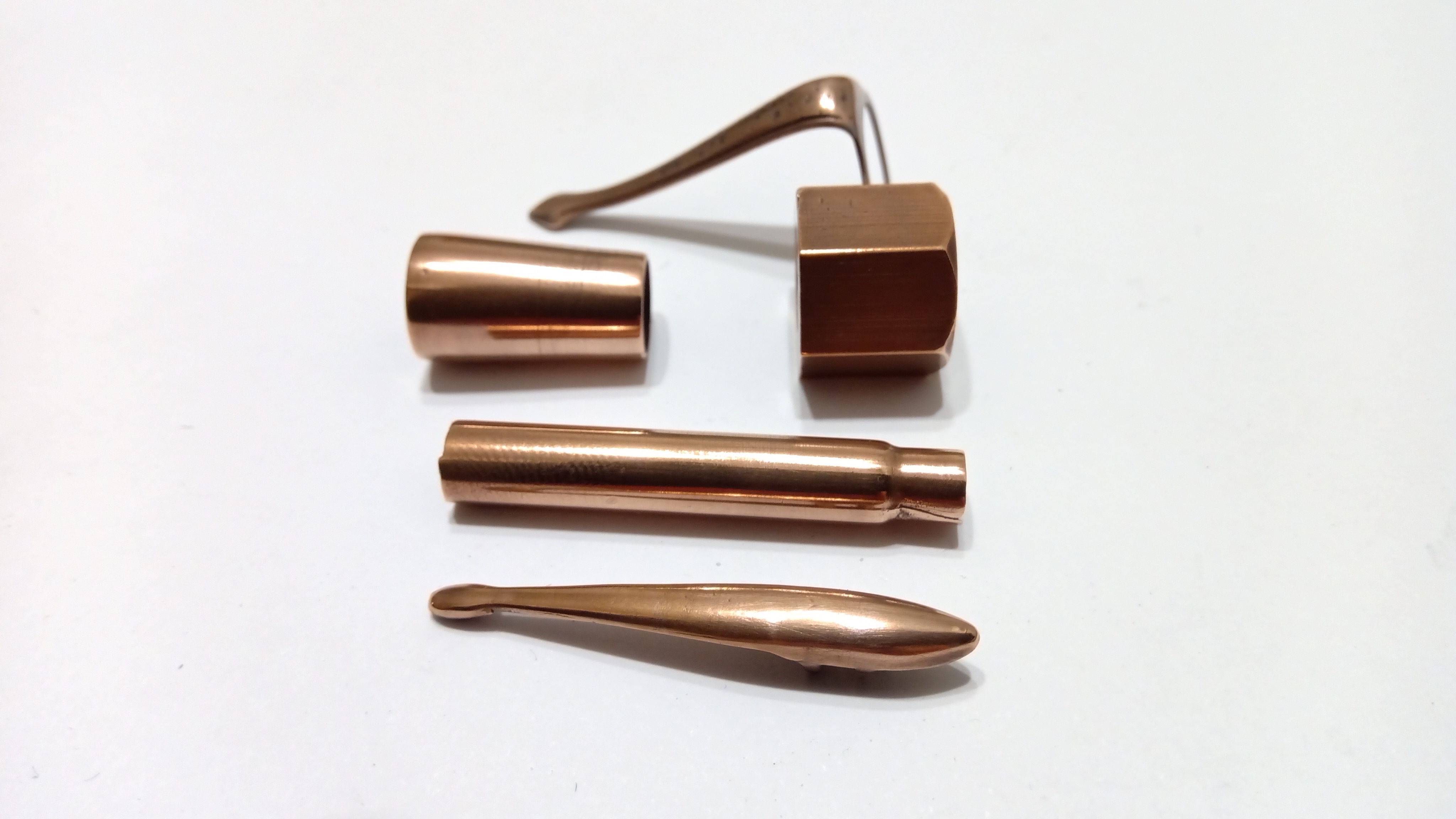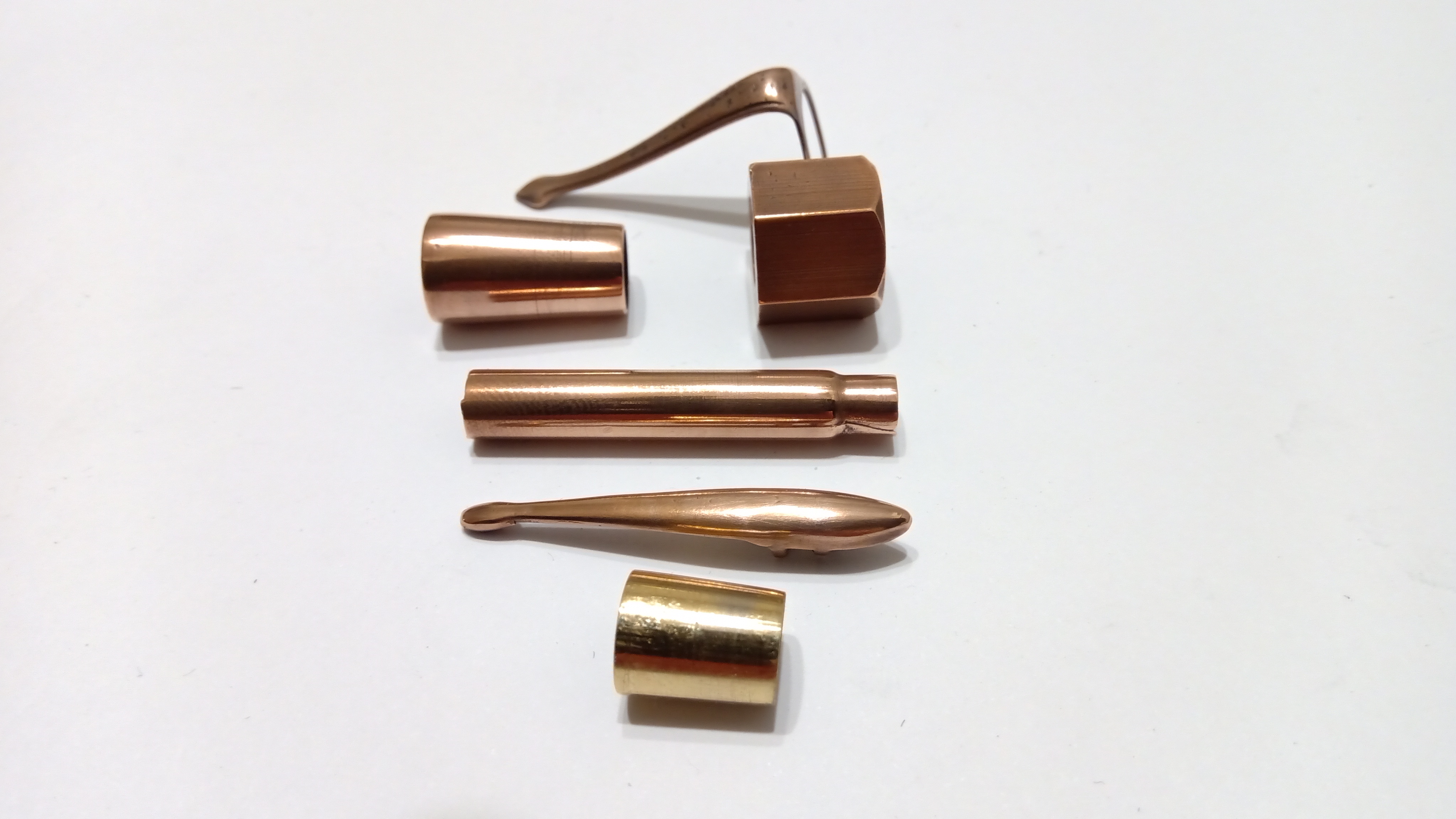 Interesante observar la diferencia entre el latón o bronce en crudo y las piezas ya cobreadas...