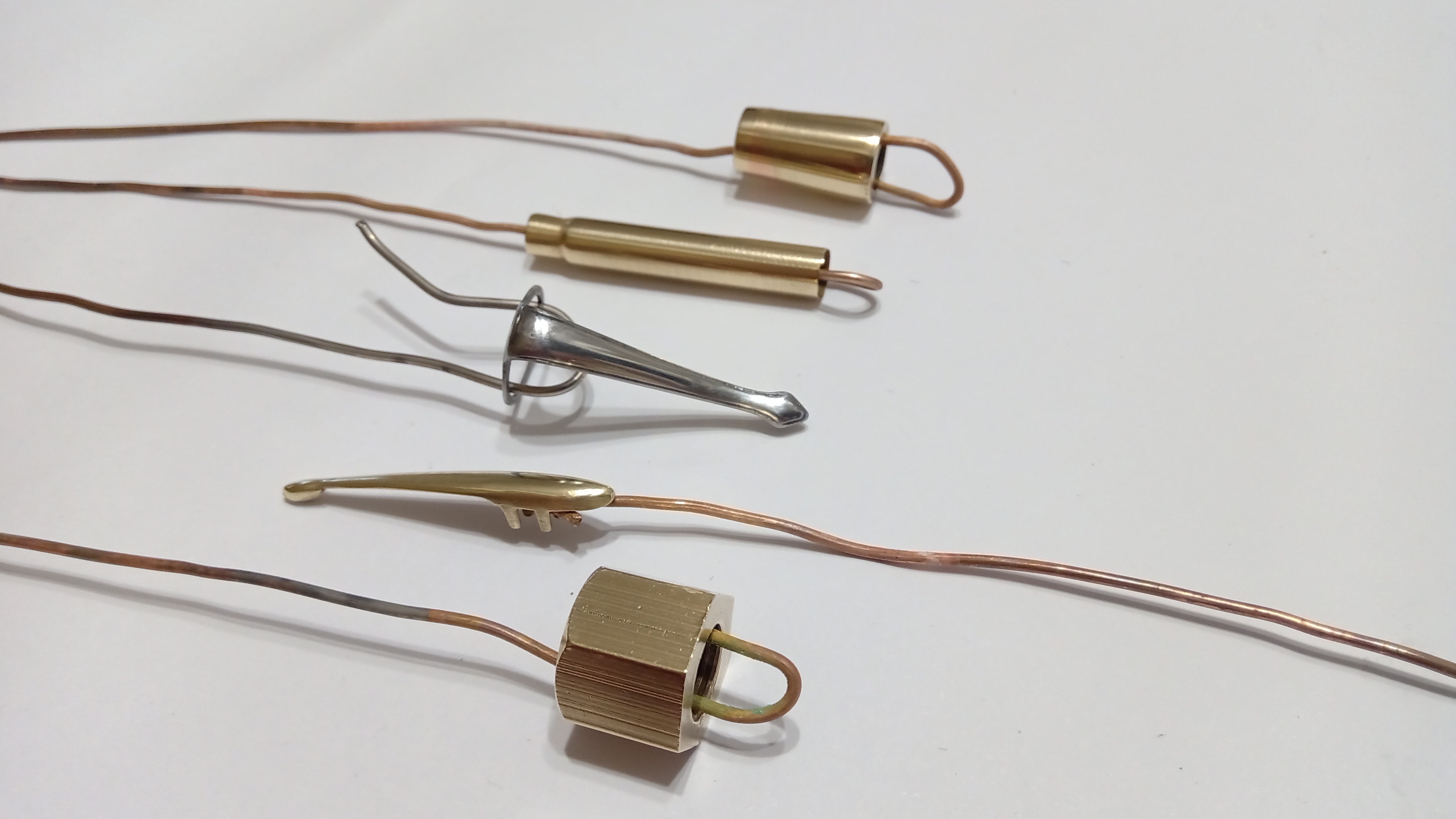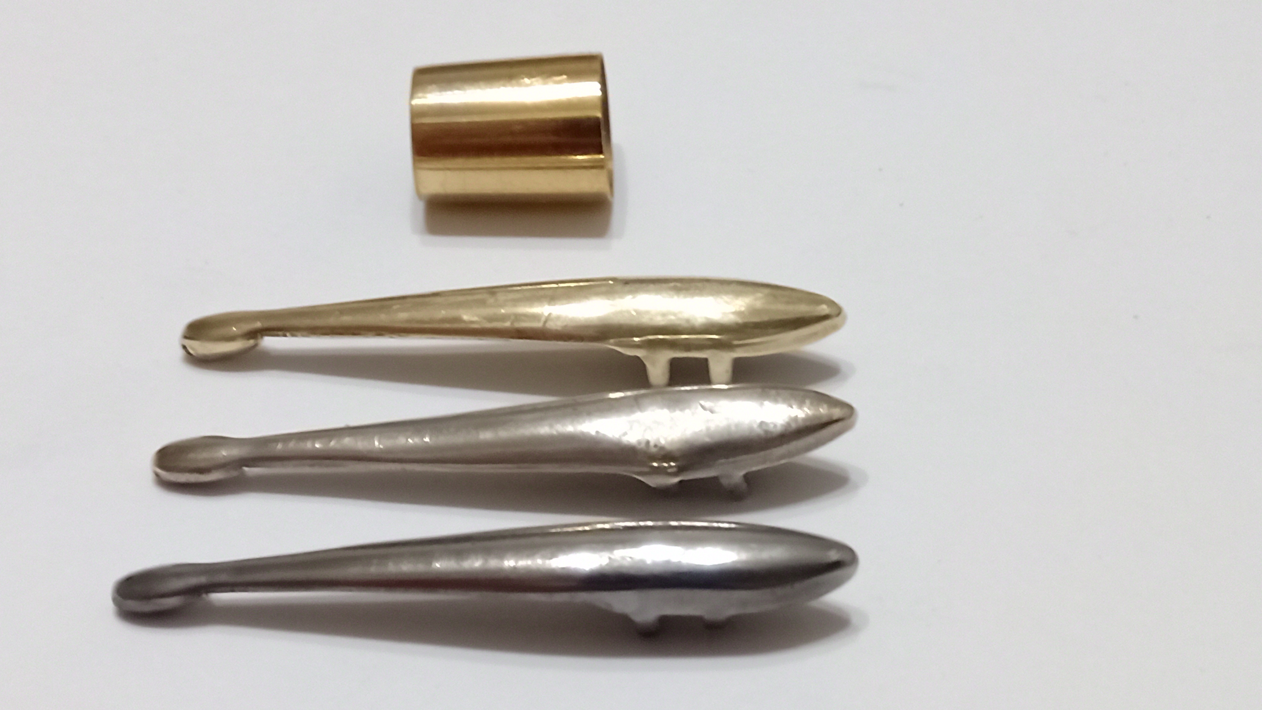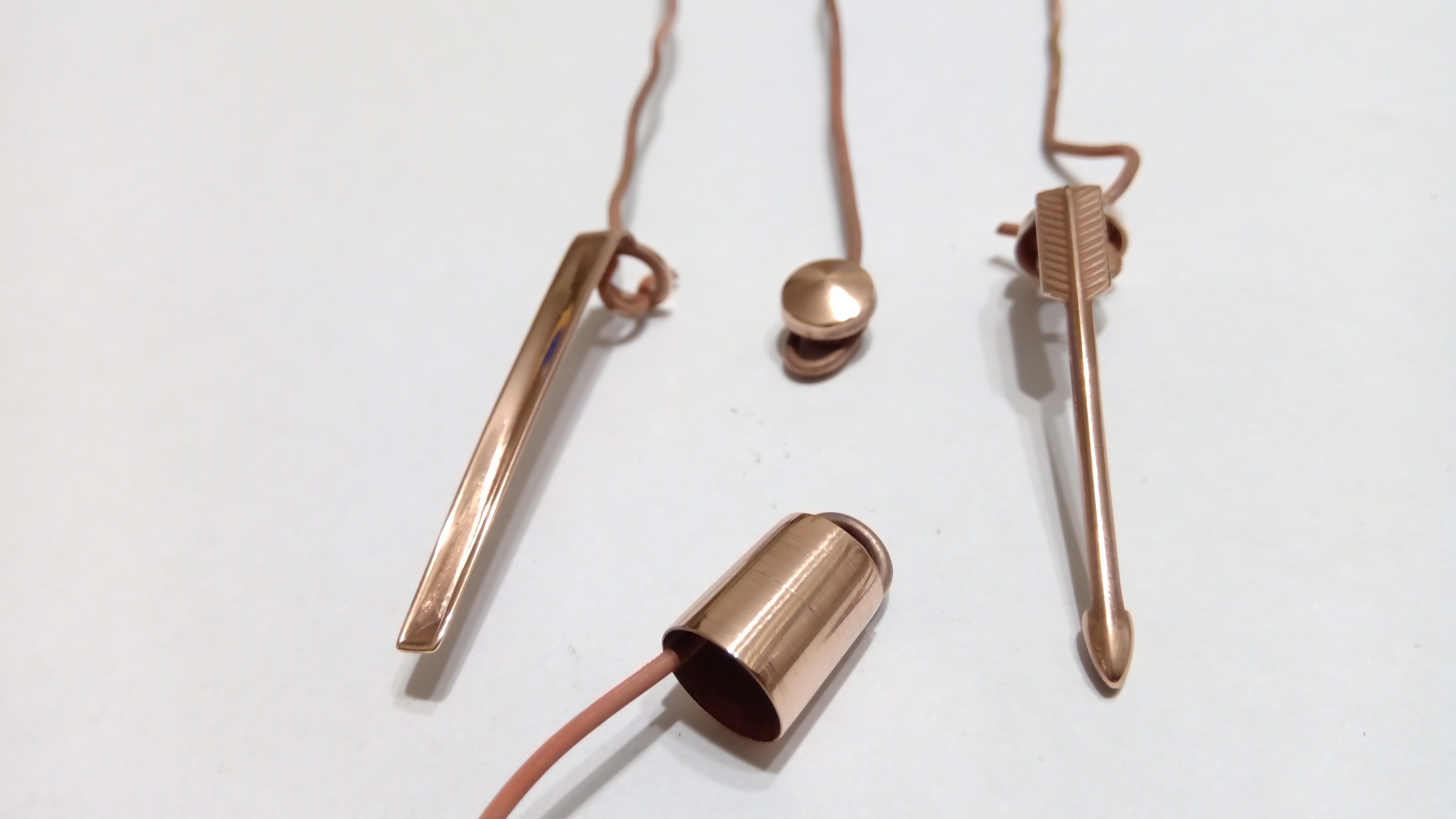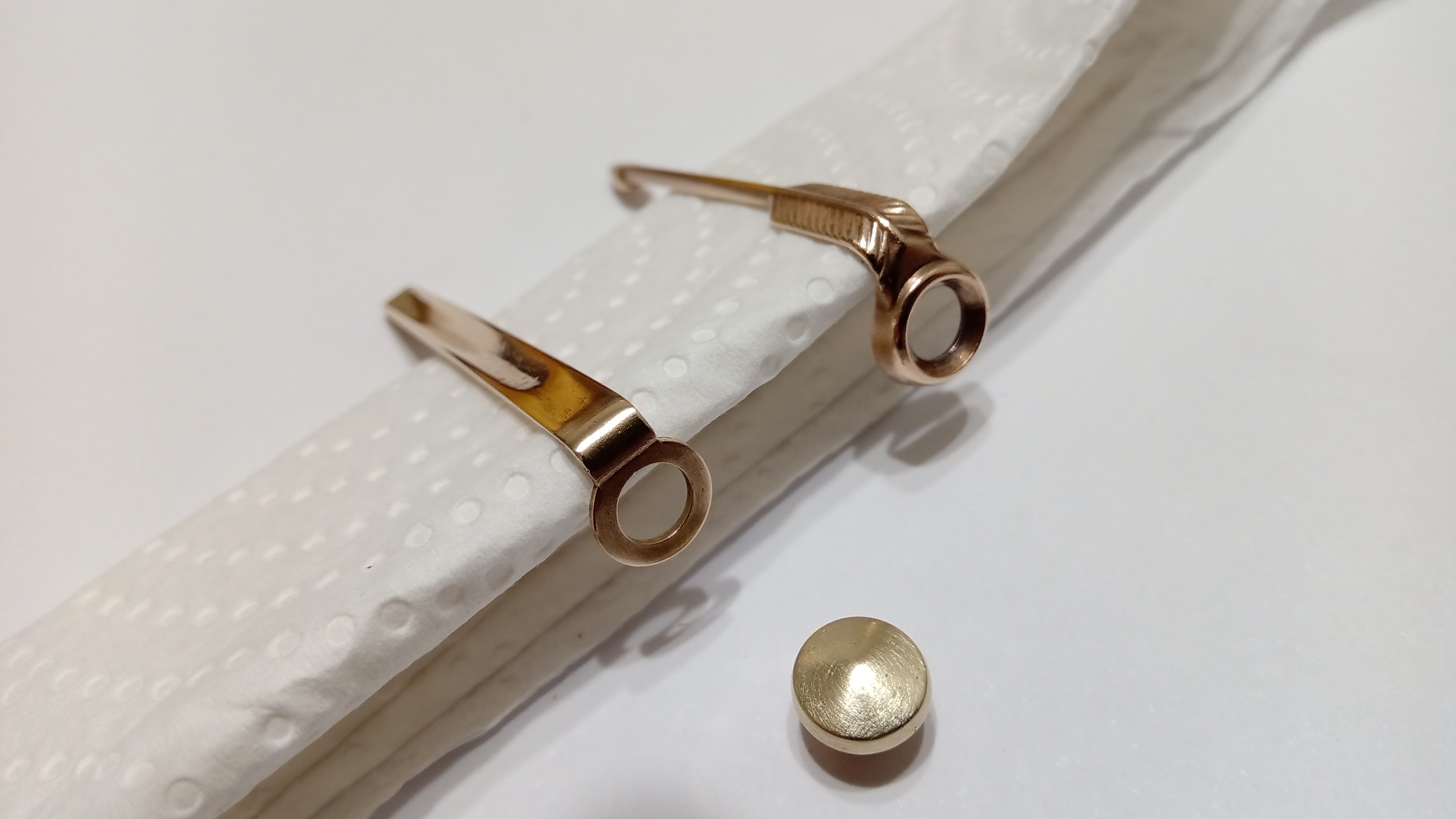 Interesante observar la diferencia entre el latón o bronce en crudo y las piezas ya cobreadas...