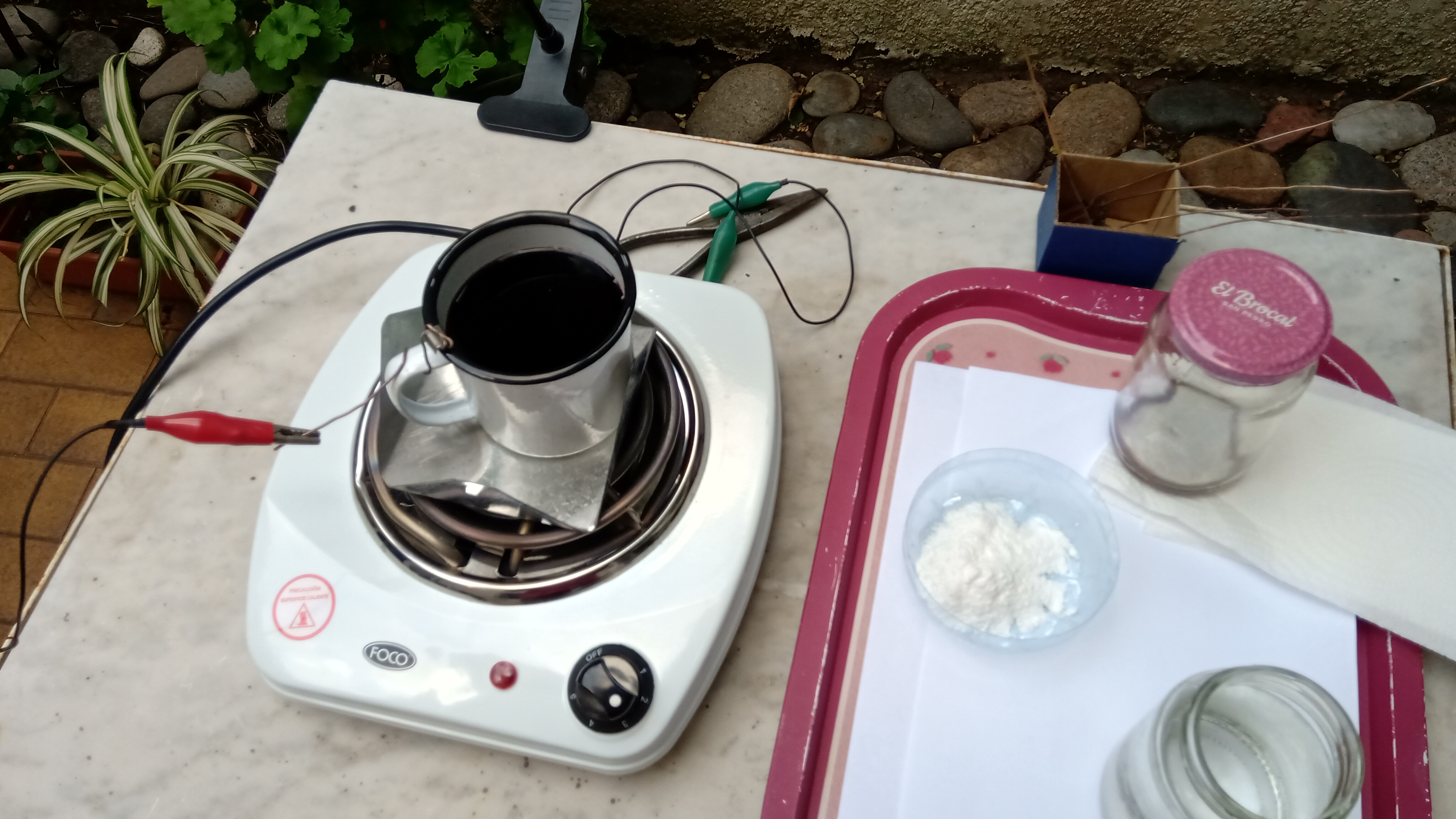 y el segundo paso fue fabricar el electrolito para realizar el cromado.