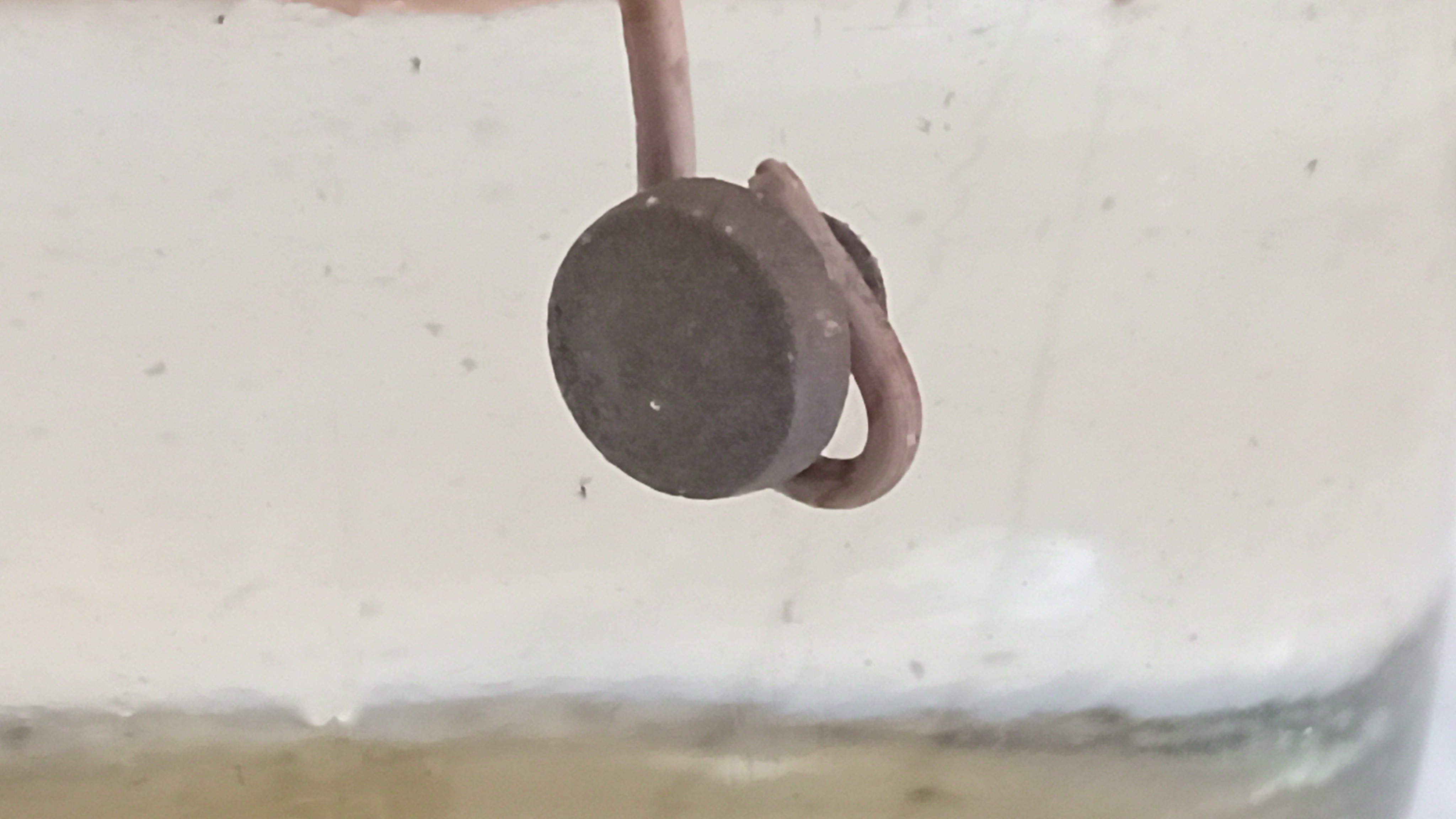 Ho quindi utilizzato come vasca di cromatura una vaso smaltato, posizionando un elettrodo di acciaio