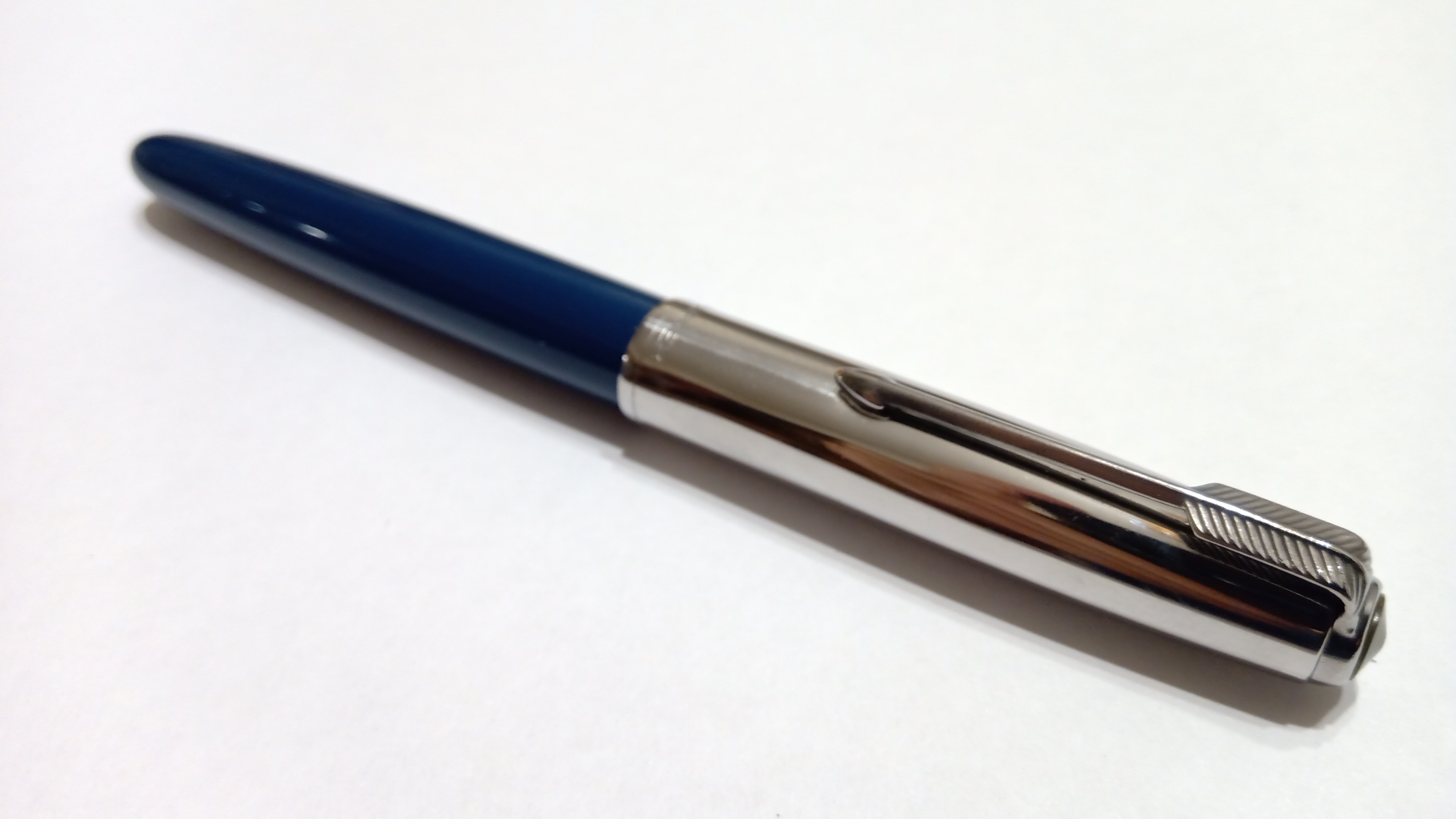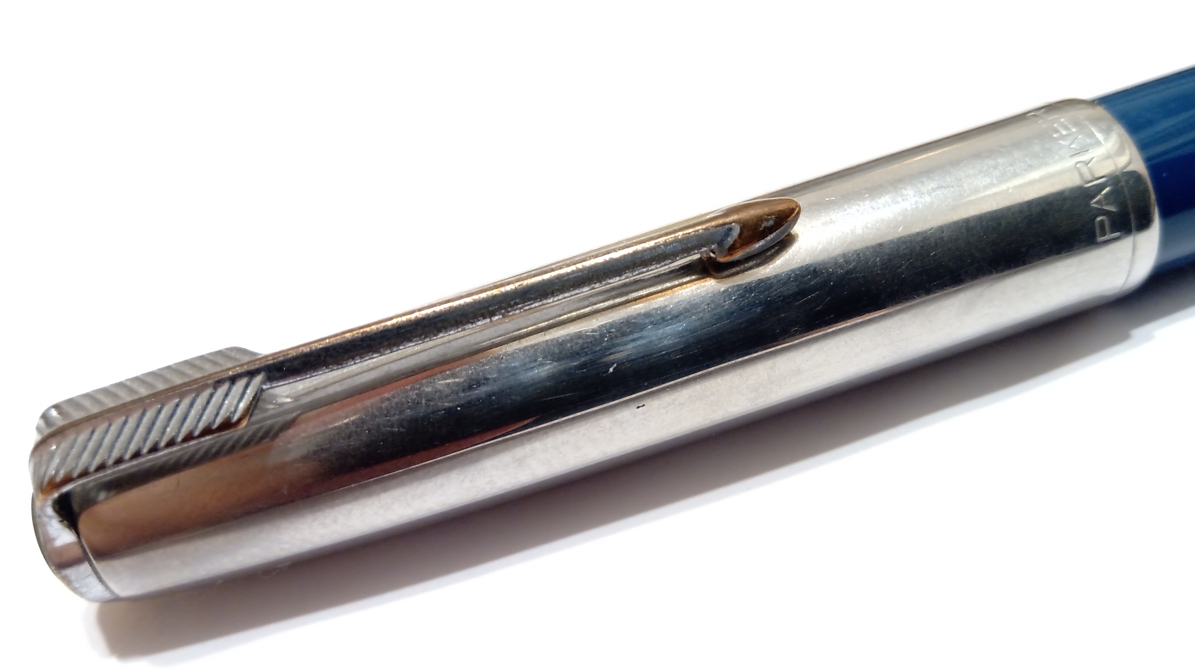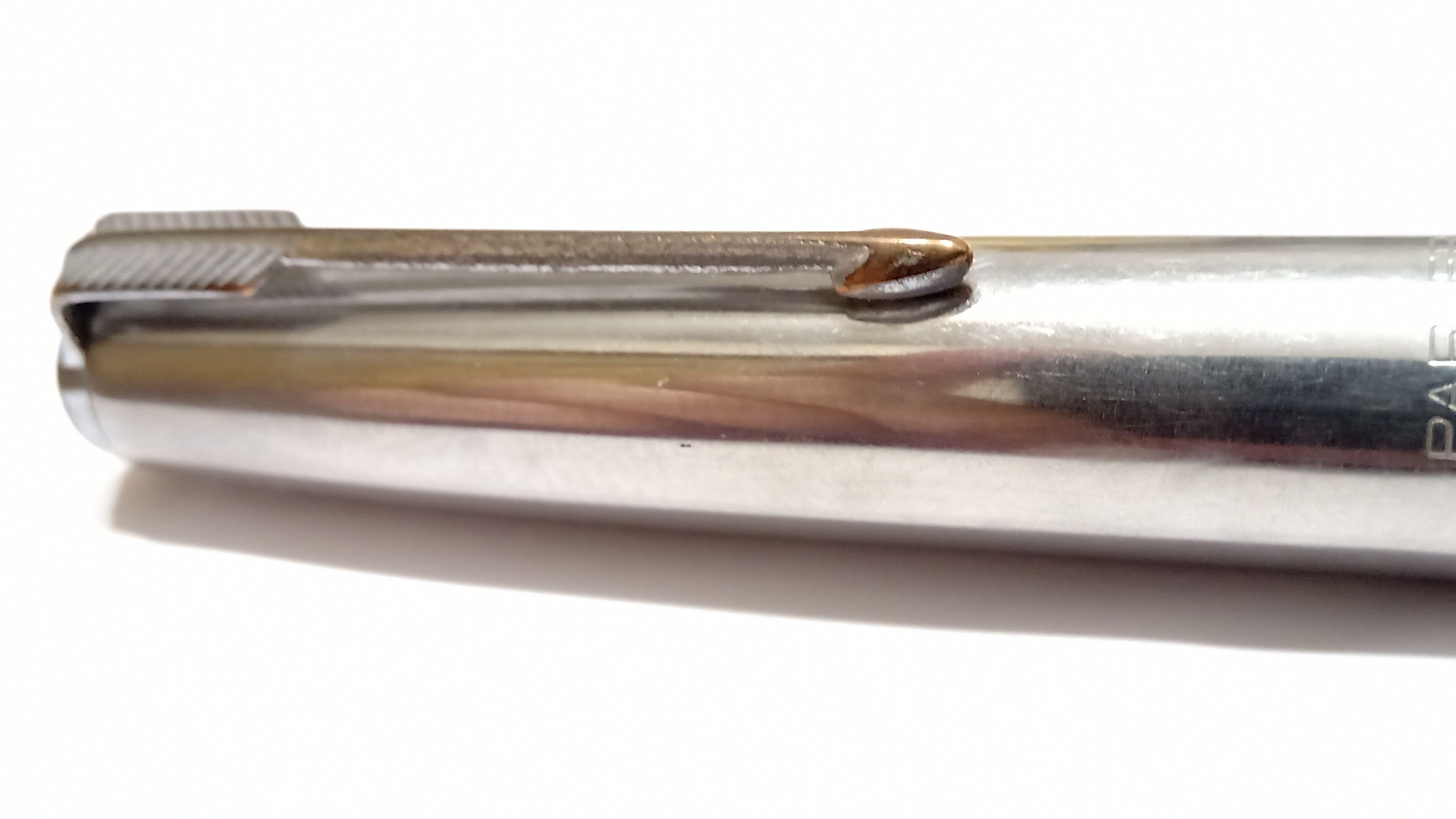 y también un clip de una Parker 51 aerométrica que por el mismo rozamiento había perdido su cromo llegando hasta el cobreado de base...